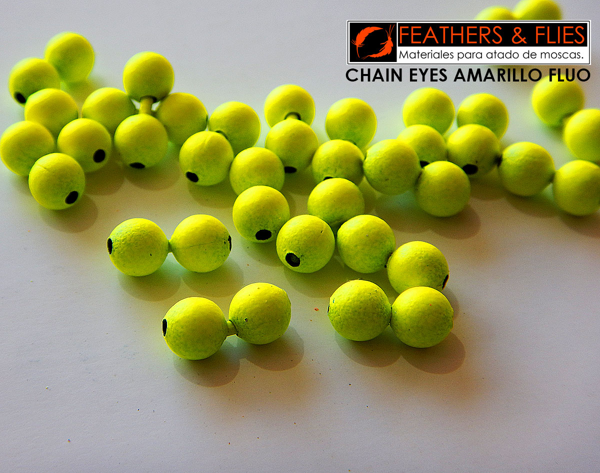 Los ojos de cadena son excelentes para la pesca en condiciones de agua turbia o turbulenta, generan un corte de agua irresistible para los peces. AHORA DISPONIBLES EN VERSIÓN DE COLOREES FLUO. 20 unidades por pack. Disponibles en medida medium (3.8mm.) y large (4.5mm.)